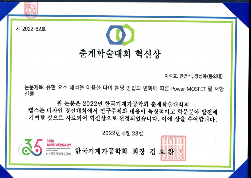 - 2022년 4월 한국기계가공학회 춘계학술대회 참여