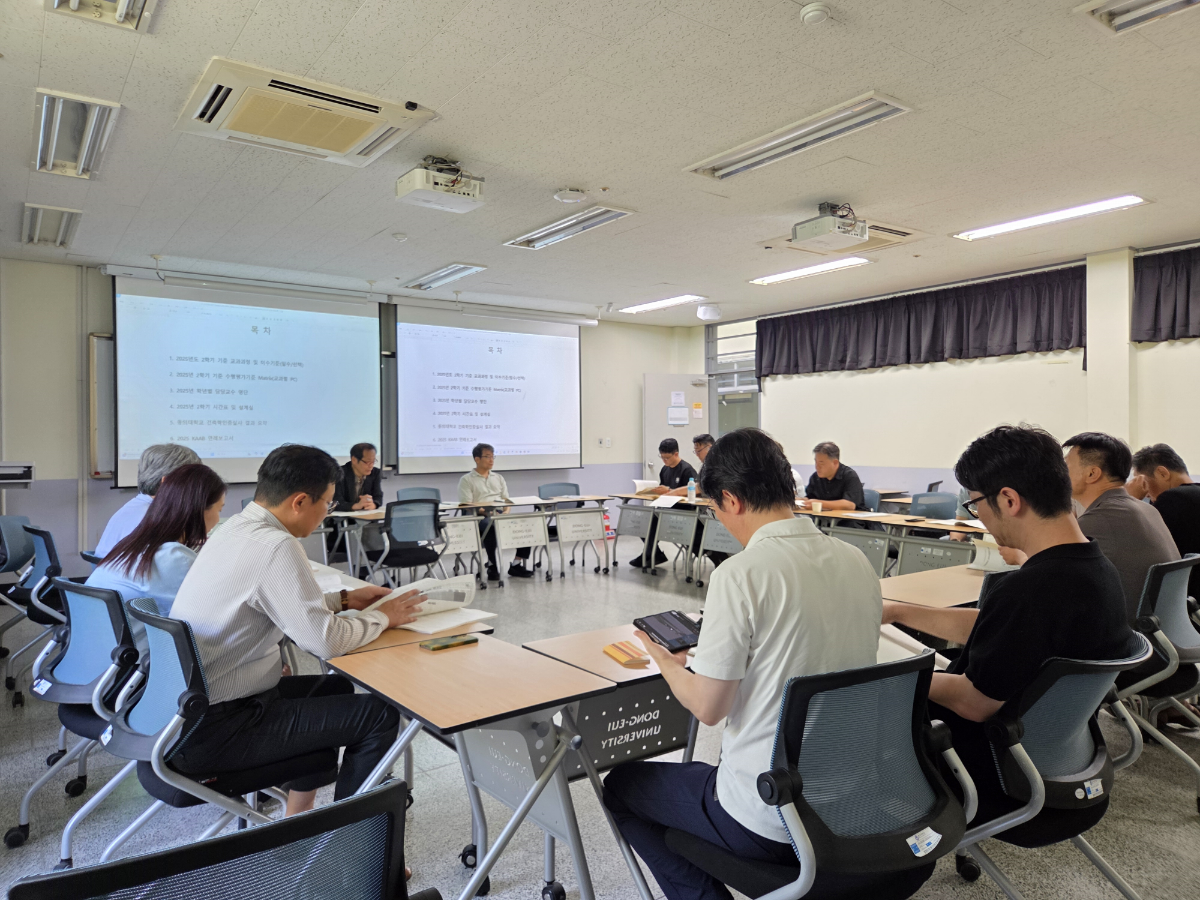 2025년 09월 05일 2025년도 2학기 개강총회 및 교강사회의를 진행하였습니다. 개강총회는 학생회 주도로 진행하였으며, 전임교수진, 동아리 소개 및 동의건축한마당 진행에 대해 설명, 소통하는 자리를 가졌습니다. 그리고 교강사회의는 공학관(22호관) 724호에서 전임교수진 포함 20여 명이 참석하였고, 학년별 이론-설계 교과목 진행과 건축학인증 변화에 대해 함께 의견을 교류하였습니다