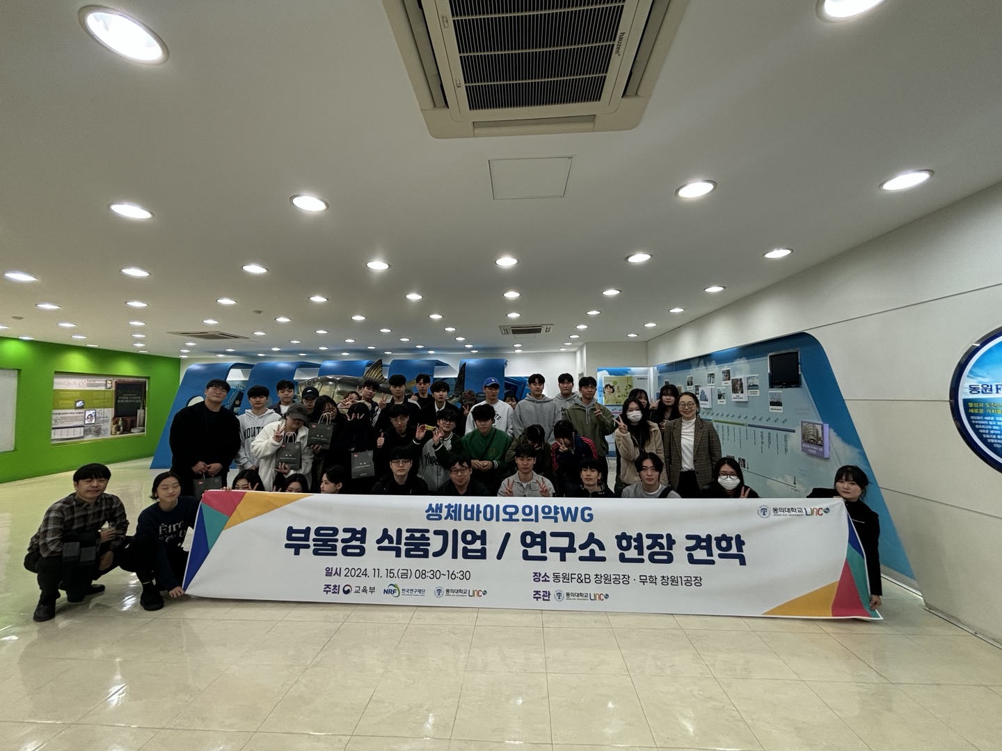 11월 15일 식품공학과 2학년 학생들이 동원 F&B, 무학 공장을 견학하고 참치캔과 소주가 어떻게 제조되는지에 대한 생산과정과 위생처리등에 대하여 보고 배울 수 있는 기회를 가졌다.