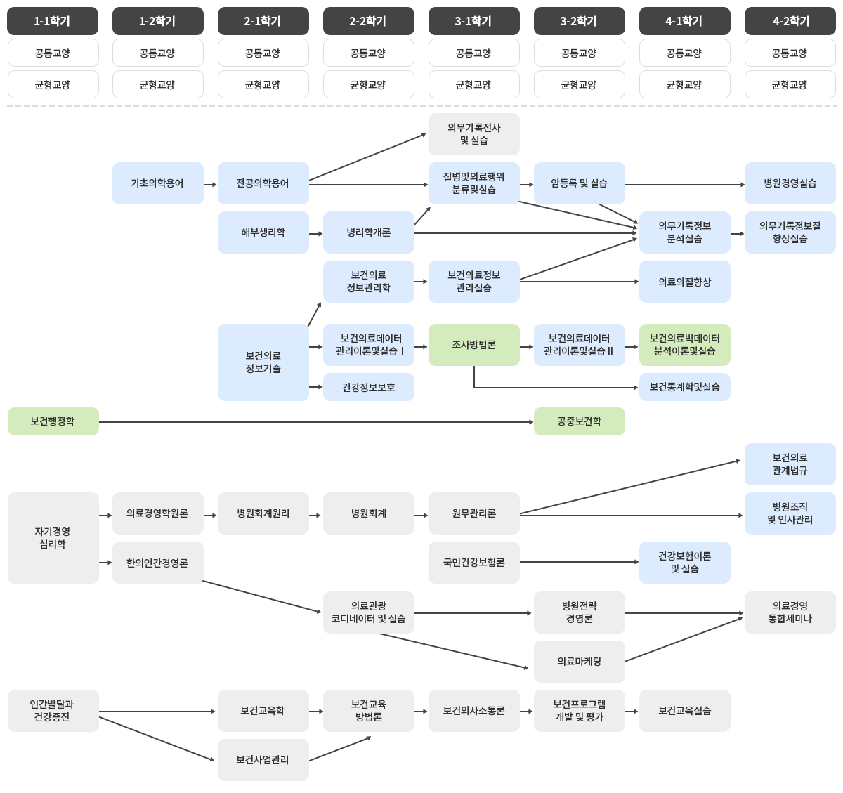선-후 이수체계 안내표입니다.