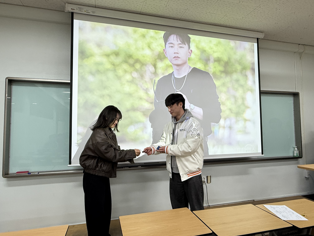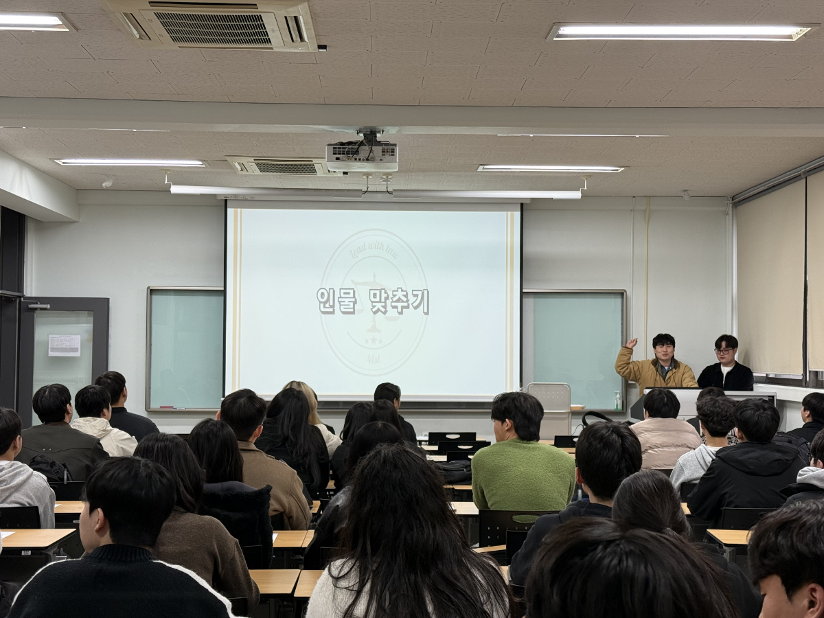 오후 5시, 법정관 302호에서 이루어진 개강총회는 학생회 소개 - 교수님 소개 - 차장 모집 공지- 과장 디자인 소개 - Q&A- 공지사항 - 미니게임 순으로 진행되었습니다.