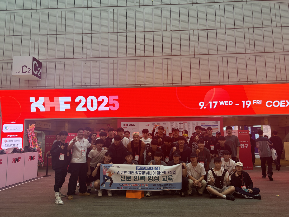 기간 : 9월 16일(화)~17일(수) 2일간 서울 코엑스에서 실시한 KHF 2025(디지털 헬스케어 박람회), 가천대학교에서 스마트 홈케어 서비스관련 교육을 실시하였습니다.