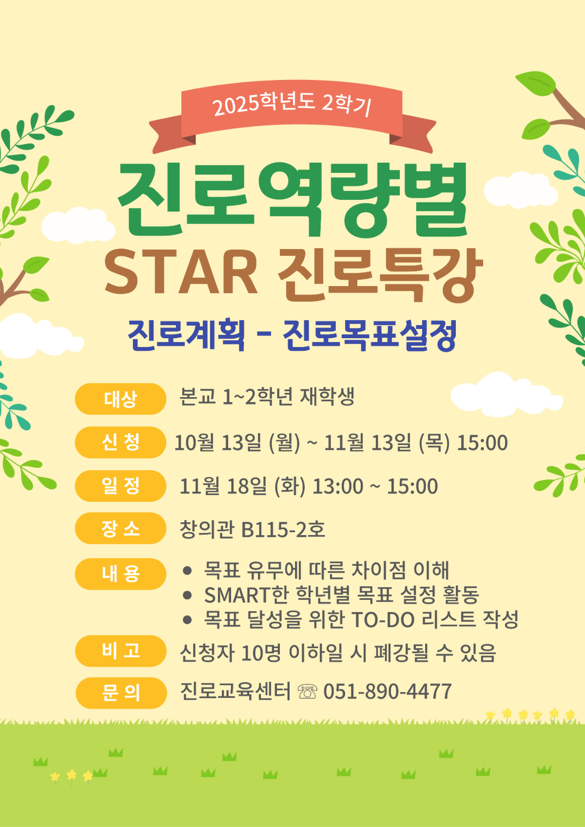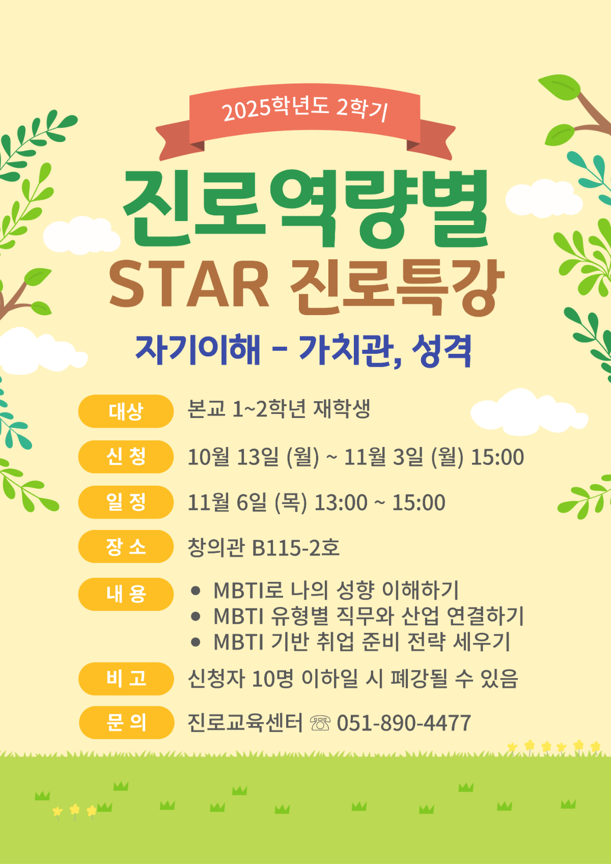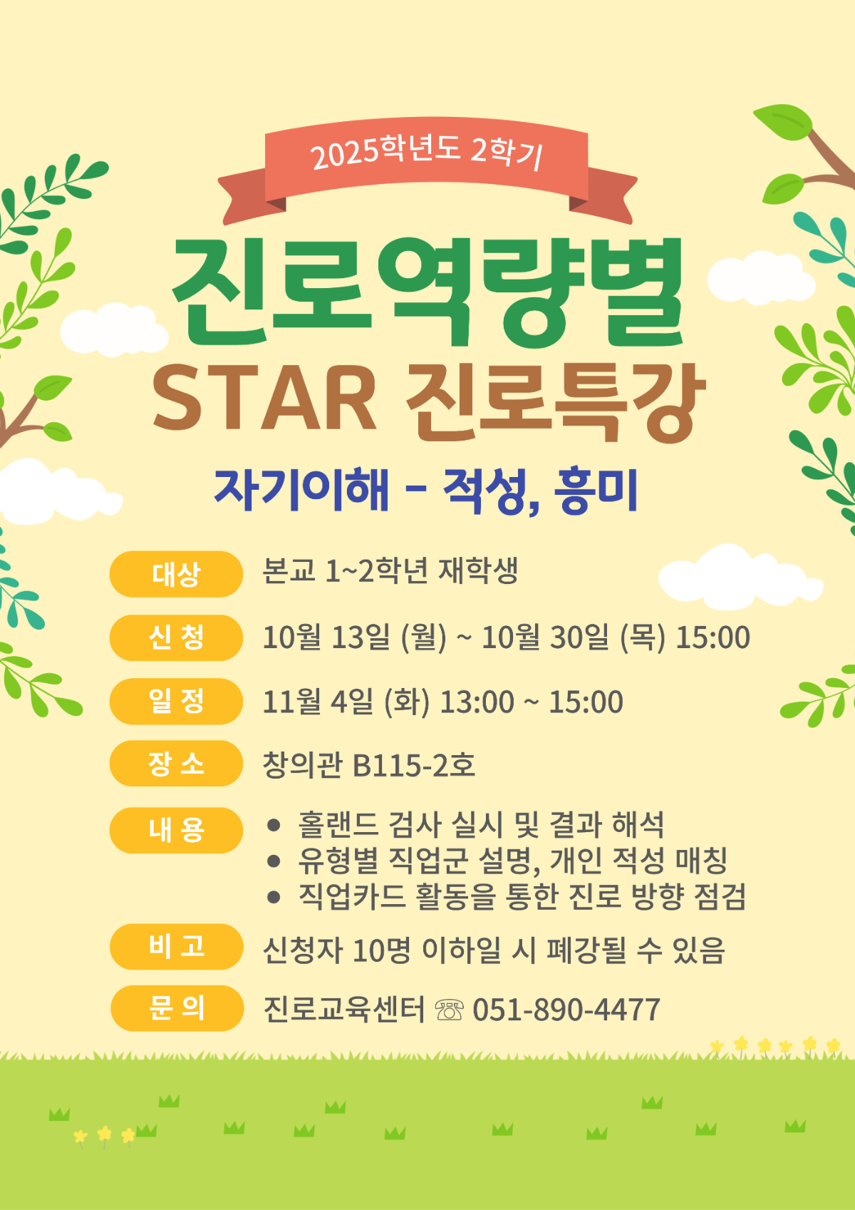 [안내]2025학년도 2학기 진로역량별 STAR 진로특강 안내