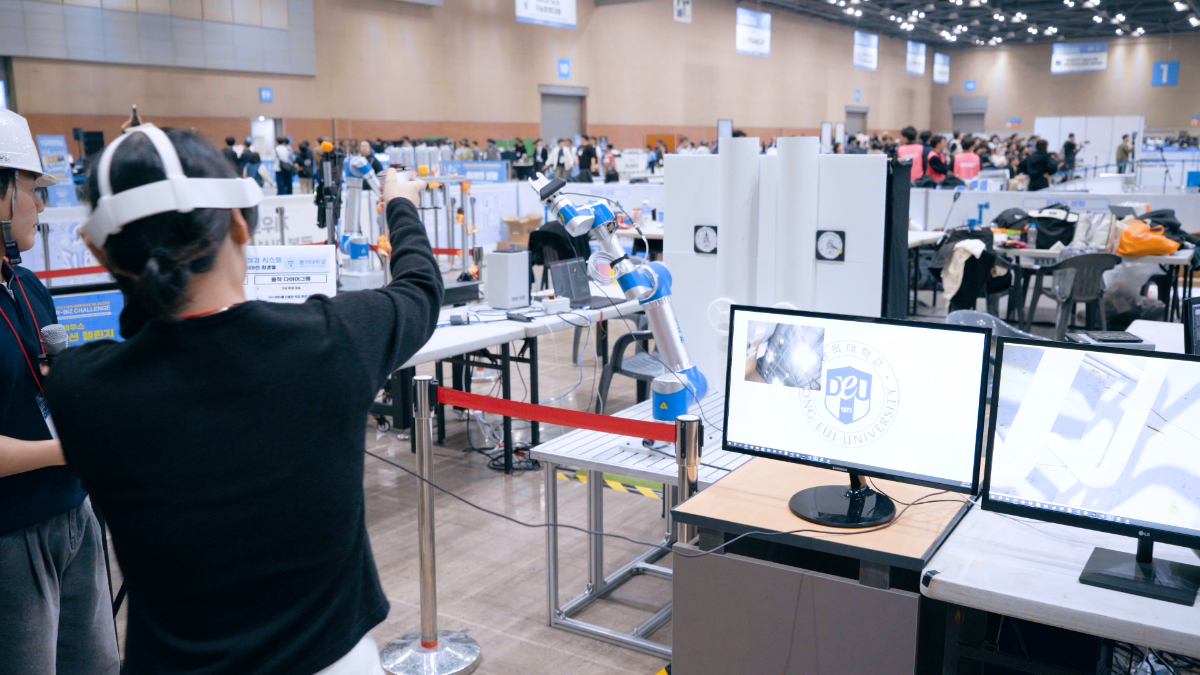 일산 킨텍스에서 지난 10월 26일 진행된 제우스 로봇 미션 챌린지는 ㈜제우스의 산업용 수직다관절 로봇 ‘제로’를 활용할 수 있는 모션 기술 개발 및 시연 대회로 동의대 RECS.v24 팀은 디지털 트윈 환경에서 VR을 활용한 제우스 매니퓰레이터 원격 제어 및 산업 점검 시스템을 성공적으로 시연하여 은상의 영예를 안았다.