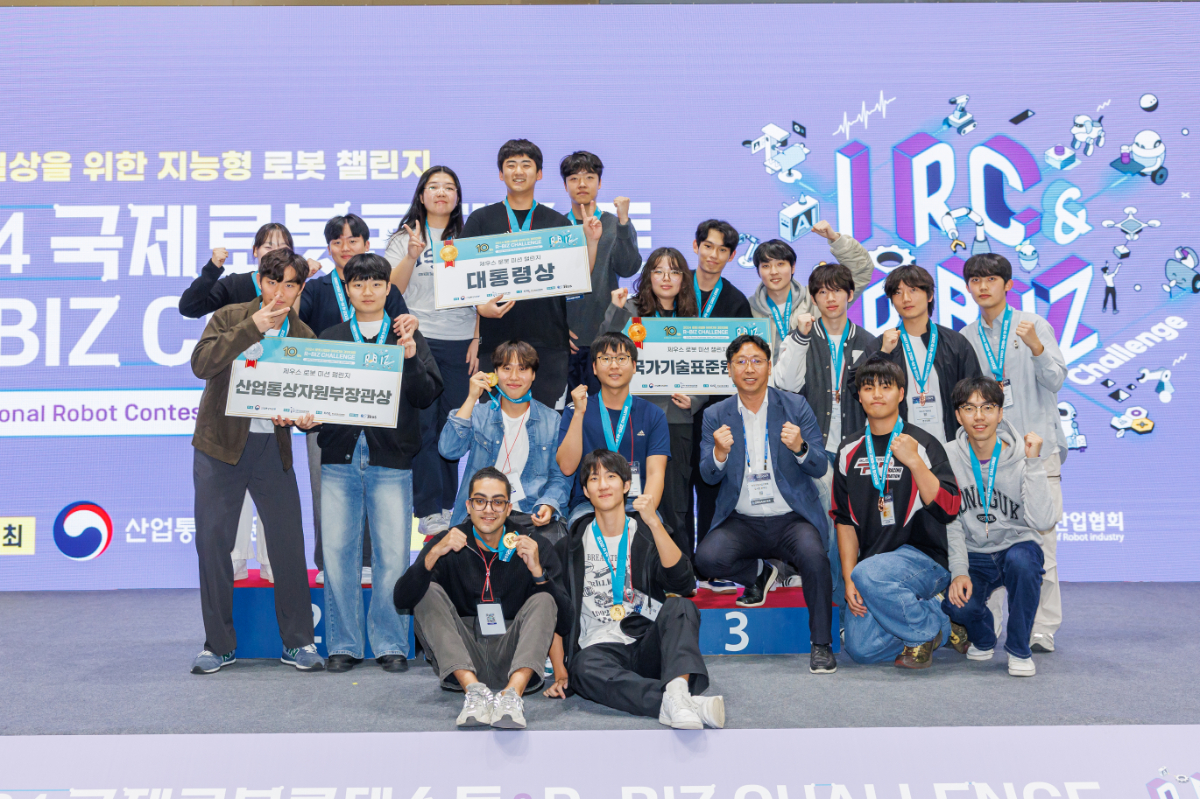 로봇·자동화공학전공 3학년 최윤호, 최경철, 이아선, 신진홍 학생으로 구성된 ‘RECS.v24’ 팀이 산업통상자원부가 주최하고 한국로봇산업진흥원과 한국로봇산업협회 등이 주관한 제10회 R-BIZ 챌린지 중 세부 대회인 ‘제우스 로봇 미션 챌린지’에서 은상을 수상하며 산업통산자원부 장관상과 상금 150만원을 받았다.