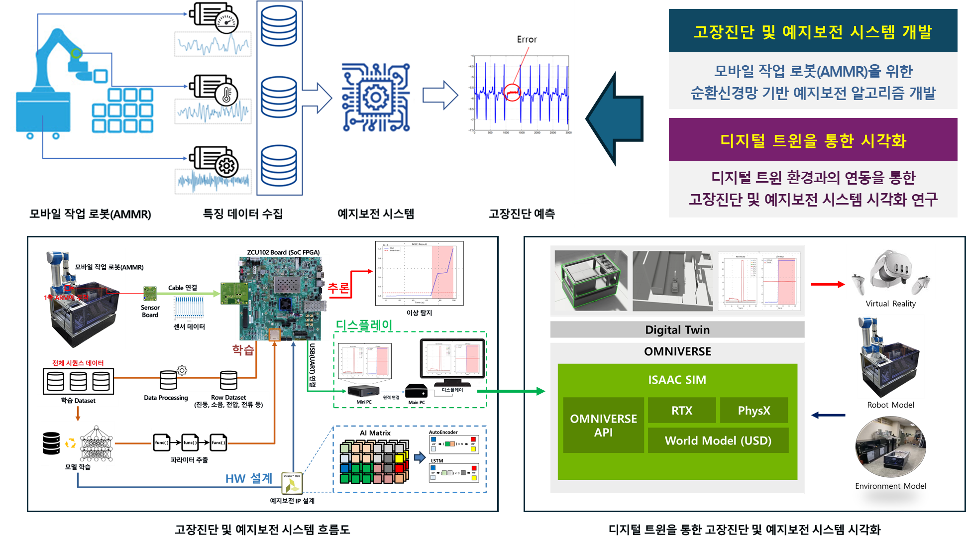 - 동의대학교 RECS 연구실은 4차 산업혁명 시대의 스마트IT제조기술 혁신을 위한 산학협력 및 인재양성을 목표로 설립되었으며, 초연결시대 지능형 디바이스를 위한 On-device AI 시스템, 자율주행 모바일 로봇(AGV, AMMR) 및 스마트 팩토리를 위한 협동로봇 등의 기술을 연구 개발하고 있습니다.