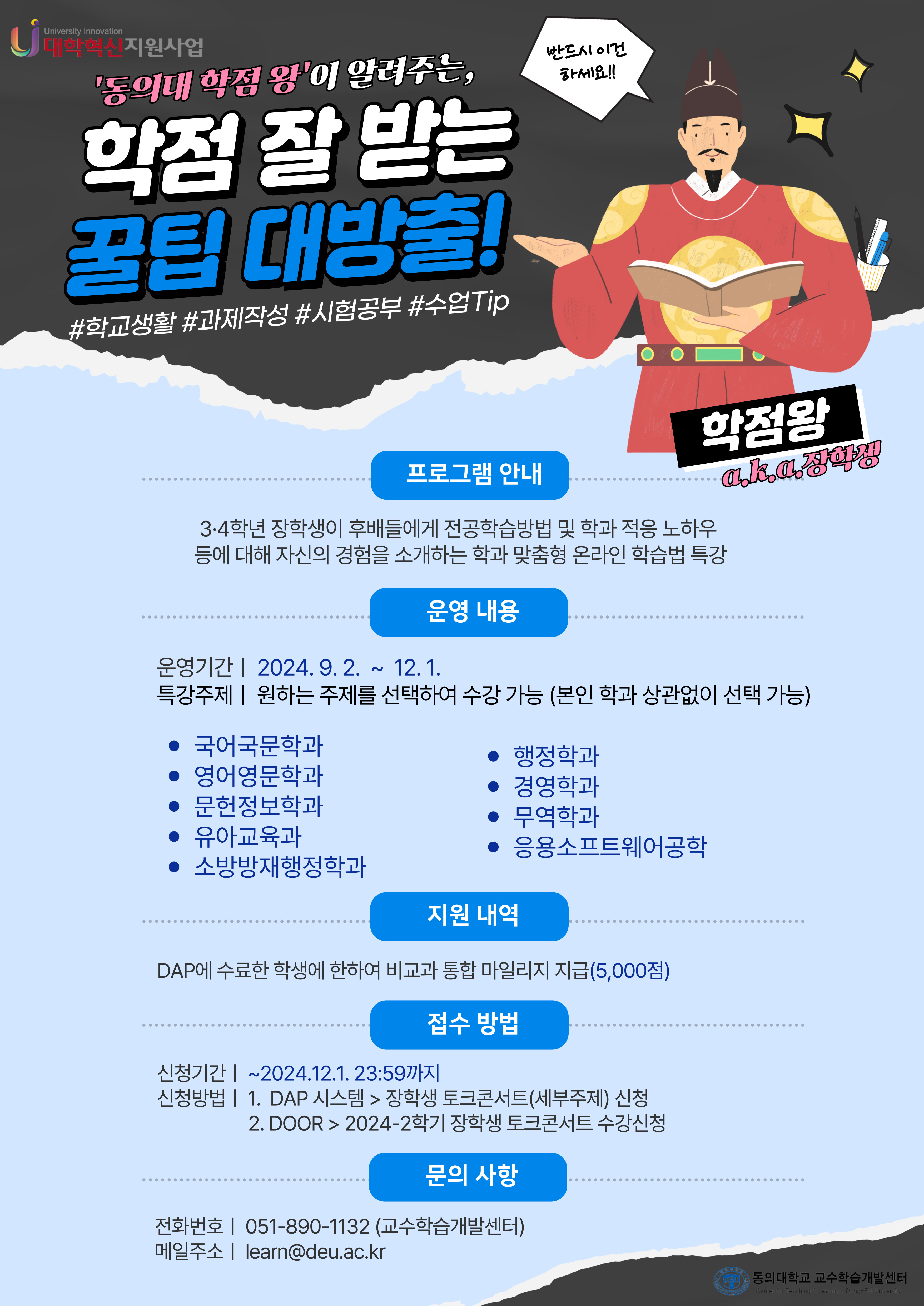 2024-2학기 장학생 토크콘서트 신청 안내[대학혁신산업]