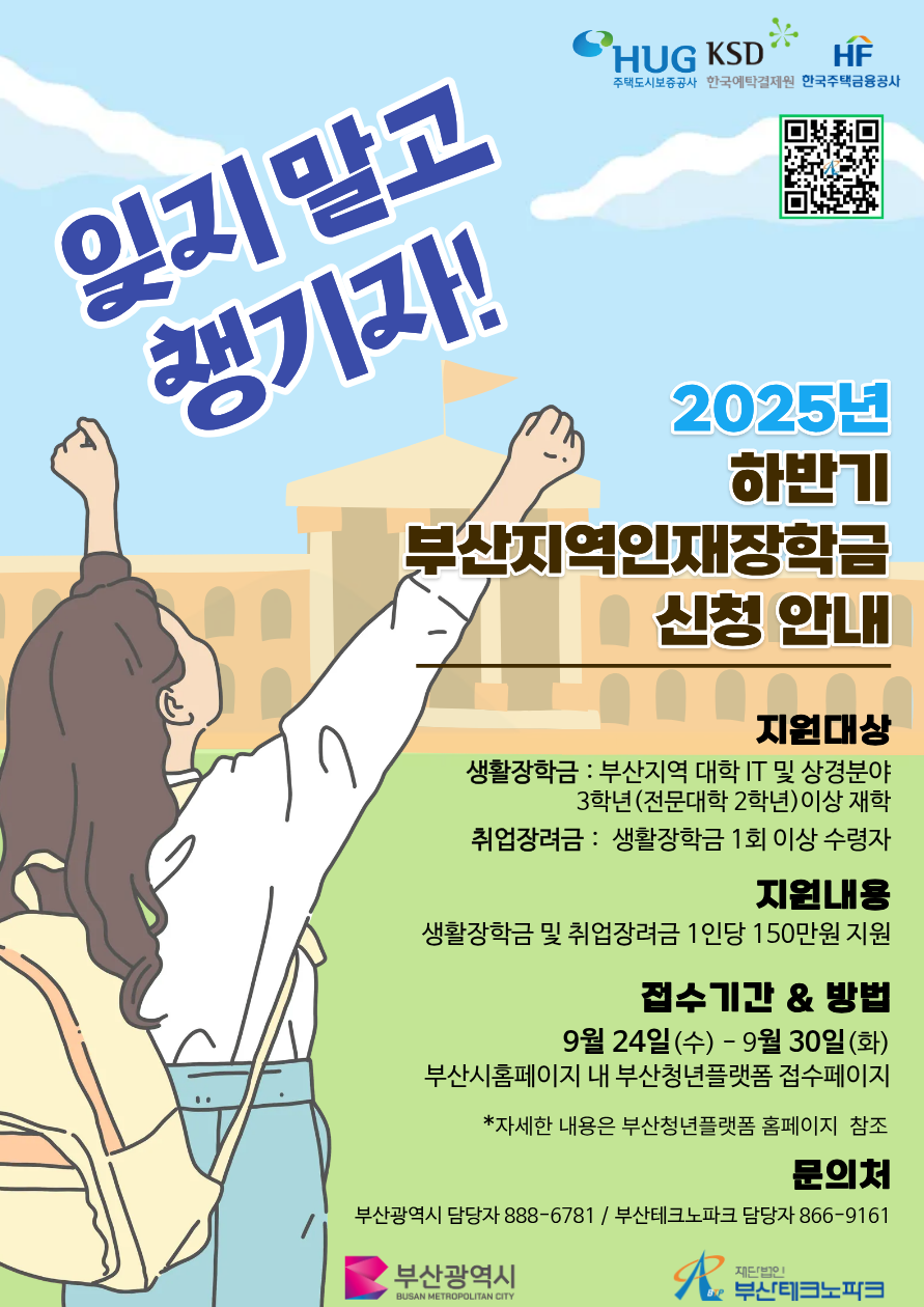 붙임: 1. 2025년 하반기 부산지역인재 장학금 지원 신청 공고문 1부
