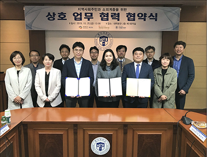 지역사회 주민(아동, 청소년, 노인, 장애인 등)의 생활안전 및 건강생활 지원 등 복지향상을 위한 지역 유관기관의 협력 및 교류 확대의 상호협력 MOU체결